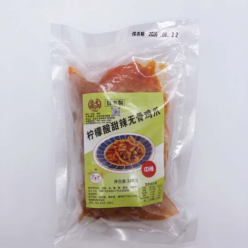 亮哥 檸檬酸甜辣無骨鳳爪(中辣)日本国内加工